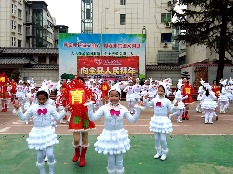 記者隨后來到實驗小學節(jié)目表演方陣,看到小朋友們頭戴白色兔子帽,跟著節(jié)奏歡快舞動,盡顯熱情活潑,積極向上的青春氣息。