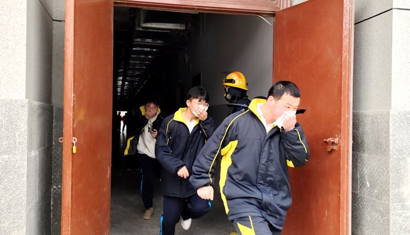 “鈴鈴鈴…”隨著模擬警報聲響起,同學(xué)們在老師的帶領(lǐng)下,低姿彎腰、捂住口鼻,按指定路線,迅速有序地撤離到了操場上。老師清點人數(shù)后發(fā)現(xiàn)一名學(xué)生被困宿舍,消防人員迅速前往被困地點,采取破拆進(jìn)行施救,利用擔(dān)架把學(xué)生安全護(hù)送到安全區(qū)域,整個流程緊張而有序。