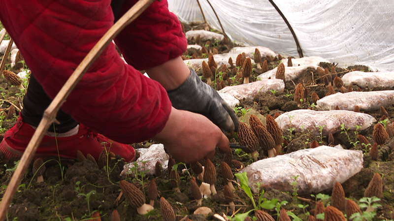 春天不僅是播種的季節(jié),也是收獲的季節(jié),棚外春寒料峭,棚內(nèi)卻暖意融融。75畝羊肚菌經(jīng)過(guò)一個(gè)冬季的孕育,如雨后春筍般破土而出,一朵朵羊肚菌撐著褐色的“小傘”,錯(cuò)落有致地盛開(kāi)在菌壟上,菌香撲面而來(lái)。采收的村民們拿著小刀穿梭在菌壟間,小心翼翼地將鮮嫩肥厚的羊肚菌采下裝入筐中。正在采摘羊肚菌的村民王桂珍告訴記者,去年冬天都在這務(wù)工,全年基本上都在這做,一天工錢(qián)七八十塊錢(qián),這個(gè)羊肚菌基地離家近、有錢(qián)掙,滿意得很。