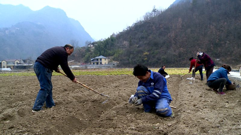 在八里坡村的藥材種植基地,村民們正在田間地頭開溝、下種、覆土……有條不紊地栽種蒼術(shù) 。