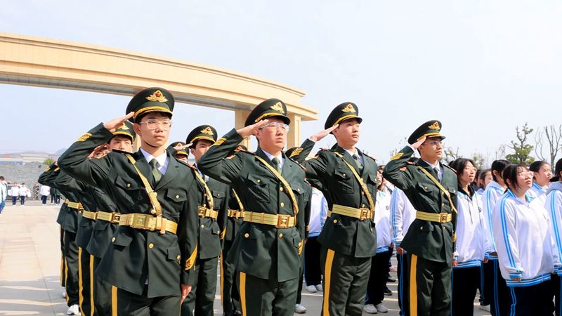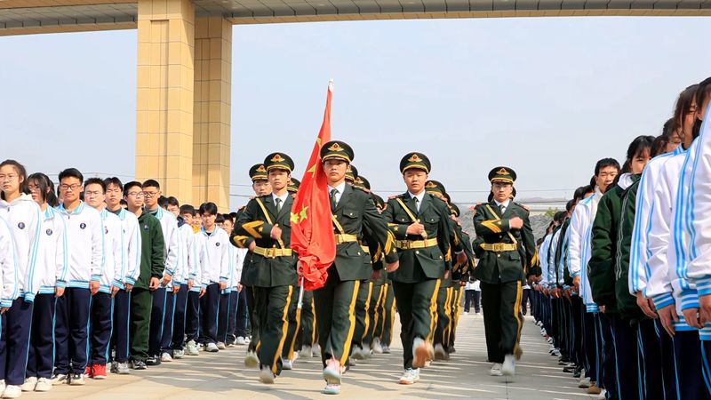 在現(xiàn)場,升旗隊邁著鏗鏘有力的正步,護(hù)送著鮮艷的五星紅旗走向旗桿,升旗手迎風(fēng)振臂,全體師生注視著五星紅旗冉冉升起,面向國旗肅立致禮。