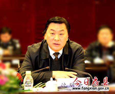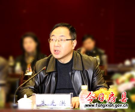 圖為縣長(zhǎng)朱光洪主持會(huì)議