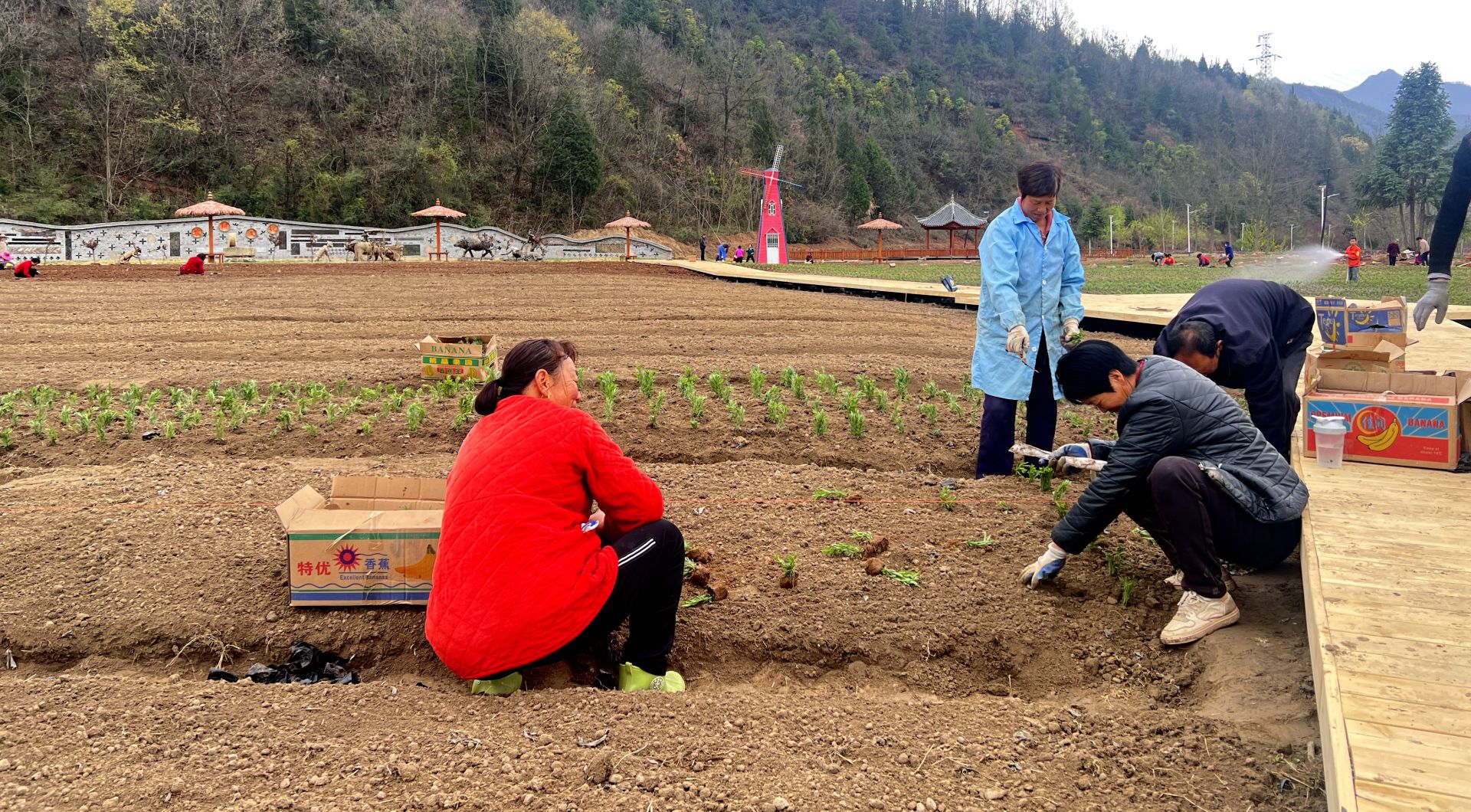 今日房縣網(wǎng)訊?通訊員 何夢雪 報道:4月1日,走進化龍堰鎮(zhèn)上灣村,村民們奔忙于田間地頭,平整土地、移栽薰衣草苗、為苗木澆水養(yǎng)護。