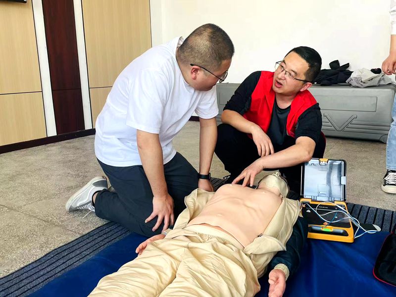 捐贈儀式結束后,組織開展了AED急救、心肺復蘇技能等培訓,確保急救人員科學有效掌握AED急救技能。培訓從理論講授、演示教學、實踐操作三個階段入手,通過互動教學,進一步提高大家對急救技能的掌握。