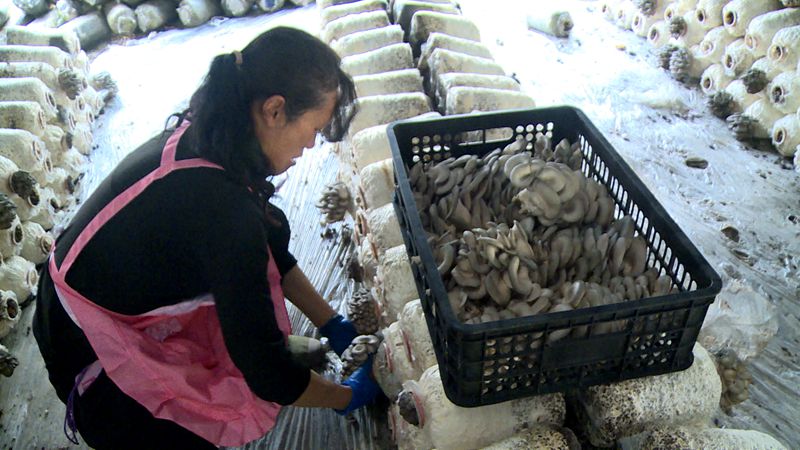 ?村民 焦啟云說:“我在這上面住,在家門口做活幾分鐘就到了,在這里做活挺好的,采菇、接種、澆水、做生產(chǎn),也可以照顧孩子,一天120元。”