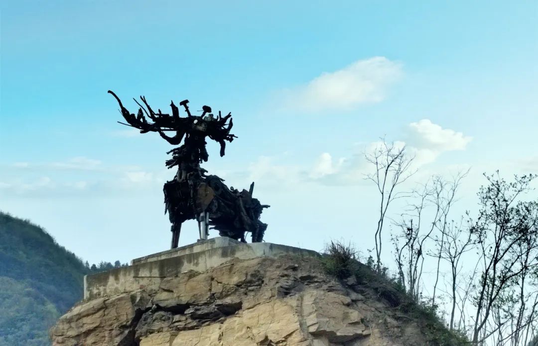 為了迎接我們的到來,年輕有為的曉虎書記和美麗能干的李軼鄉(xiāng)長親自當起了導游。他們口吐蓮花,訴說著你的前塵往事和今生今世,也向我們揭開了你的神秘面紗。我一路都在思索著,你是有多大的魅力和積淀呢,竟吸引了四面八方的目光前來一睹你的芳顏?是無私奉獻的庫區(qū)精神,還是艱苦奮斗的移民精神,抑或助人為樂、一諾千金的優(yōu)秀品質(zhì)?在“共同締造”示范村——化口村,我找到了答案。這是一個像葫蘆狀的村落。村口緊接化口大橋,又處在太和梅花谷景區(qū)入口,占盡了地理優(yōu)勢。進村口不遠有一處小型廣場,名曰:鹿鳴廣場,最先映入眼簾的是右側(cè)山包上的一只鹿。李鄉(xiāng)長介紹說,鹿是用廢棄挖機的零部件組裝而成,既變廢為寶,又和西關(guān)印象的鹿鳴廣場遙相呼應。這只鹿栩栩如生,氣運流轉(zhuǎn)。它矗立在高處,既遙望遠方,又躬耕腳下,像極了奮斗不息的姚坪人民。