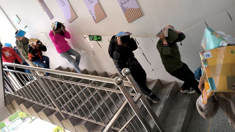隨著一聲尖銳的哨音響起,全體學(xué)生在老師的組織下,迅速用手護住頭部蹲下,鉆入課桌下面或在墻角進行避震;聽到第二聲哨音,學(xué)生們按照規(guī)定路線快速有序地向操場上撤離空曠的操場,各班級教師清點人數(shù)。整個撤離過程組織得力、疏散有序共耗時20余秒,達(dá)到了安全疏散預(yù)期目標(biāo)。