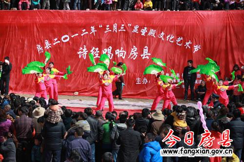 此次活動是以“詩經唱響房縣”為主題,以豐富多采的文藝活動為載體,以大 家喜聞樂見的文藝節目,抒發人民群眾對黨、對祖國、對家鄉的熱愛之情,進一步 唱響“科學發展、共創和諧”的主旋律。據了解,為期一天的文化藝術節演出各類 30多個;共發放《貸款知識問答》、計劃生育宣傳資料、艾滋病防治、稅法知識問 答、婦幼保健知識宣傳、法律法規知識問答等各類宣傳資料2萬余份;接受群眾咨 詢1500多人次;贈送科技圖書1600余本。