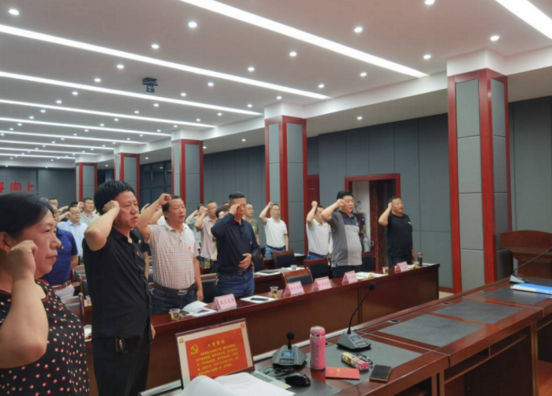 解讀尾聲,全體黨員起立,高舉右手莊嚴宣誓,重溫自己對黨的忠誠誓言,汲取奮進力量。