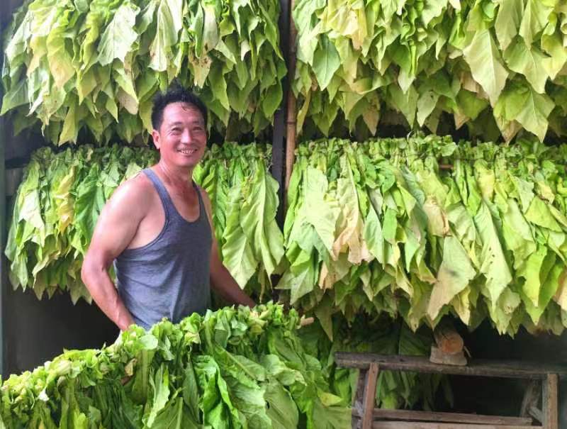 “采摘的煙葉按照分揀、掛桿、再送進(jìn)烤煙爐,經(jīng)過5-7天的恒溫烘烤,便可出爐。自己今年種了40畝煙葉,每畝可烤出成品煙250斤,按現(xiàn)在的采收價(jià)格每斤15元,預(yù)計(jì)一年可增收8萬元”。煙農(nóng)吳作操笑著說道。