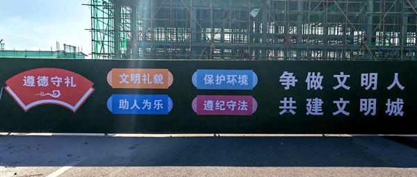 為助力文明城市創(chuàng)建、確保今年成功提名全國文明城市,我縣將創(chuàng)文工作和城區(qū)環(huán)境整治、精細(xì)化管理提升相結(jié)合,將建筑工地圍擋作為推進(jìn)文明城市創(chuàng)建的一項重要工作來抓,努力將建筑工地打造成傳遞正能量、展現(xiàn)精神文明風(fēng)貌的一處高地。