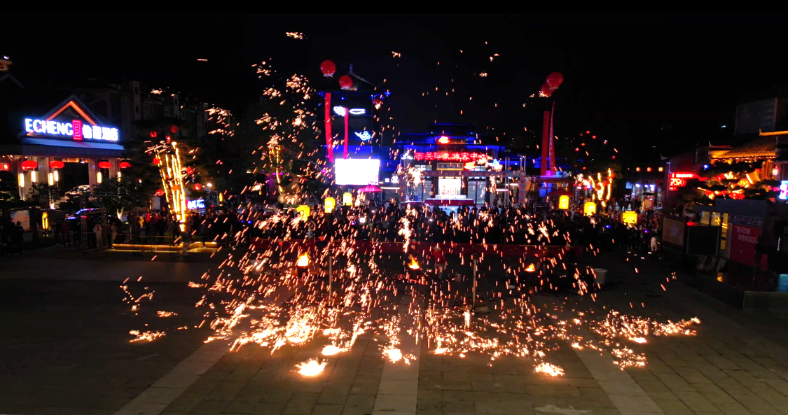 活動現(xiàn)場人頭攢動,熱鬧非凡。富有特色的歌舞表演輪番上演,有獎問答、游戲互動精彩連連。開場舞《周南行》、古典女子群舞《花間意》、雙人舞《水云間》將詩意舞姿轉(zhuǎn)化成了視覺藝術(shù),現(xiàn)場觀眾不時拿出手機(jī)記錄下精彩瞬間;房縣西關(guān)老街文旅有限公司董事長、羅國士關(guān)門弟子、羅氏月季非遺傳承人羅良軍現(xiàn)場大秀技藝、大展身手,一副艷麗華滋、飽滿豐韻的畫作——牡丹躍然紙上;非遺技藝“打鐵花”更是驚艷亮相,掀起了整場慶典活動的高潮,打花藝人輪番用花棒將上千度的鐵汁擊打到棚架上,黑夜瞬間被四射的花火照亮,流星如瀑,現(xiàn)場觀眾紛紛叫好。