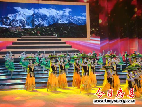 中國(guó)電視文藝“星光獎(jiǎng)”創(chuàng)辦于1987年,與中國(guó)電視劇“飛天獎(jiǎng)”、中國(guó)電影“華表獎(jiǎng)”并稱(chēng)三項(xiàng)政府大獎(jiǎng)。本屆“星光獎(jiǎng)”由國(guó)家廣電總局和湖北省人民政府主辦,中國(guó)電視藝術(shù)委員會(huì)、中央電視臺(tái)、中共湖北省委宣傳部、湖北省廣播電視總臺(tái)承辦。晚會(huì)現(xiàn)場(chǎng),我縣選送的反映詩(shī)經(jīng)文化的歌舞《山風(fēng)》第一個(gè)登上舞臺(tái),與來(lái)自吐魯番的紗裙舞娘、阿詩(shī)故鄉(xiāng)的環(huán)佩叮當(dāng),還有藏區(qū)牧民奔放爽朗的班戈諧欽同臺(tái)表演《盛世歡歌》。房縣演出人員一上場(chǎng),就贏得在場(chǎng)觀眾熱烈掌聲。他們載歌載舞,《詩(shī)經(jīng)》的低吟輕唱被還原為最熱烈的生活。整個(gè)演出時(shí)間長(zhǎng)達(dá)3分多鐘。