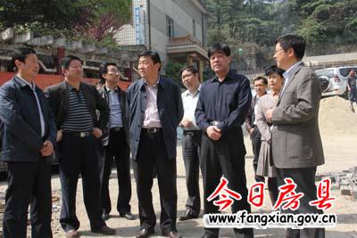 今日房縣網訊 記者何瓊通訊員馬飛 報道: 19日,市人大常委會副主任梁吉祥一行來房縣檢查保障性住房和溫泉改造項目建設工作。縣領導沈明云、王啟云、姚天國、胡維英陪同調研。