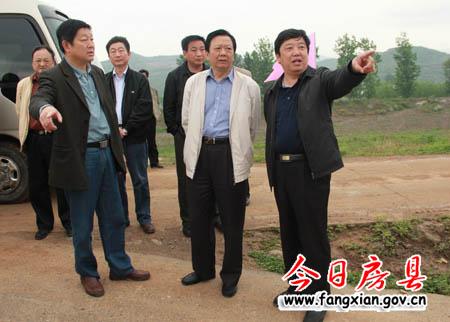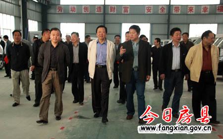 圖為市人大常委會(huì)副主任周有順(中)在縣人大常委會(huì)主任王啟云、副縣長(zhǎng)高明哲等領(lǐng)導(dǎo)的陪同下參觀東城工業(yè)園