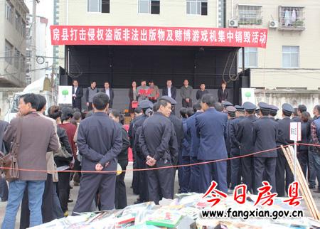 今日房縣網(wǎng)訊 見習記者劉臣 實習生何俊 報道:25日,我縣打擊侵權盜版非法出版物及賭博游戲機集中銷毀活動在縣體育場舉行,市“掃黃打非”工作小組辦公室主任包海衛(wèi)、縣委常委、宣傳部部長徐錦鳳出席活動現(xiàn)場,縣直相關單位的干部職工參加活動。