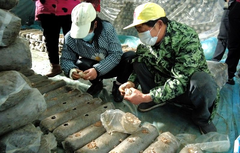 “食用菌接種就是邊消毒、邊打孔、邊接種,接好了以后發(fā)酵,發(fā)酵好了,到10月份就開始長香菇了。”村民龔書才邊忙著打孔,邊介紹香菇制種的經(jīng)過。