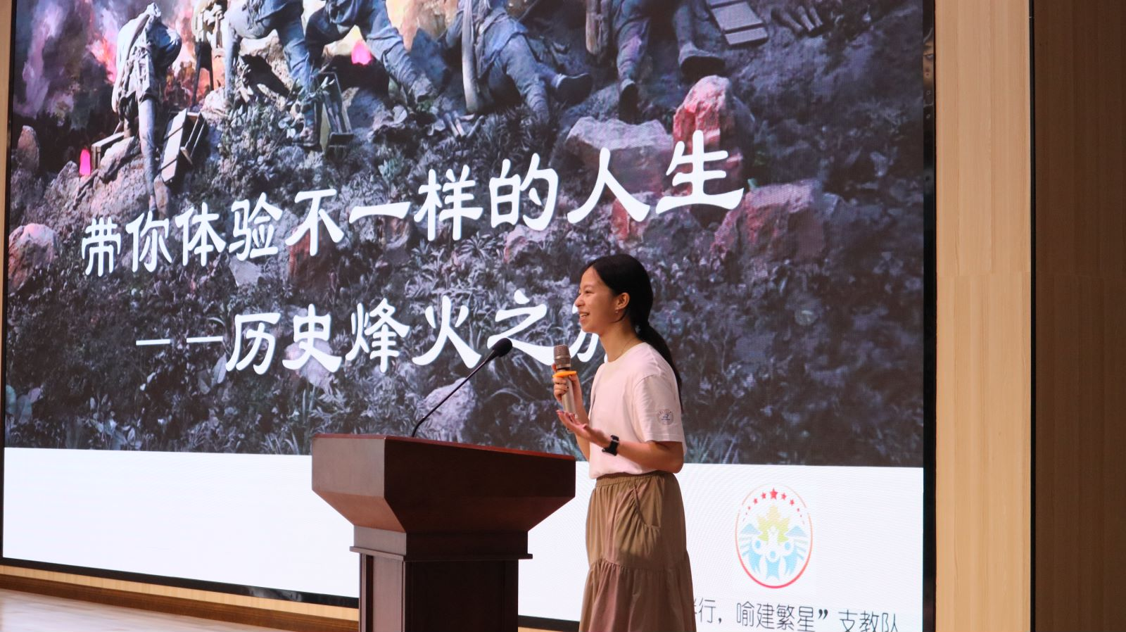 活動中,支教團(tuán)隊(duì)隊(duì)長黎芮嘉介紹了“七彩假期”志愿服務(wù)項(xiàng)目的意義,并表達(dá)了團(tuán)隊(duì)希望通過此次活動,將志愿服務(wù)的火種傳遞給每一位孩子,助力他們?nèi)姘l(fā)展。思源學(xué)校校長張瑛波對華中科技大學(xué)“青梧伴行,喻建繁星”志愿服務(wù)隊(duì)的到來表示了熱烈的歡迎和誠摯的感謝。他希望孩子們能夠珍惜這次難得的學(xué)習(xí)機(jī)會,將所學(xué)所感轉(zhuǎn)化為前進(jìn)的動力,努力成為有理想、有道德、有文化、有紀(jì)律的新時代接班人。
