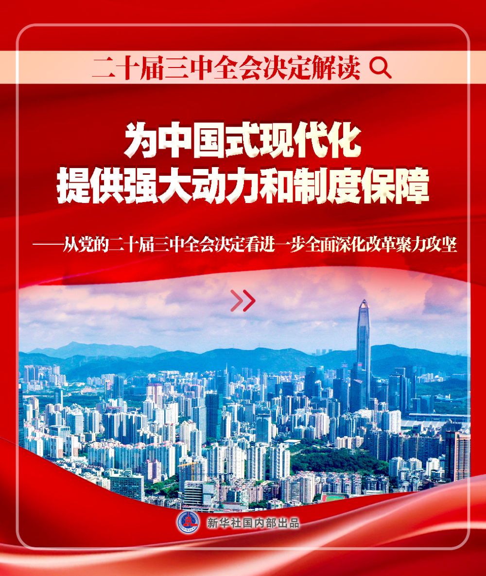 7月21日,《中共中央關(guān)于進一步全面深化改革、推進中國式現(xiàn)代化的決定》發(fā)布。新華社推出一系列解讀報道,深入闡釋黨的二十屆三中全會決定。