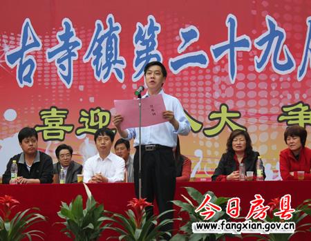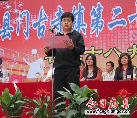 圖為門古寺鎮(zhèn)黨委書記代新武在開幕式上致辭