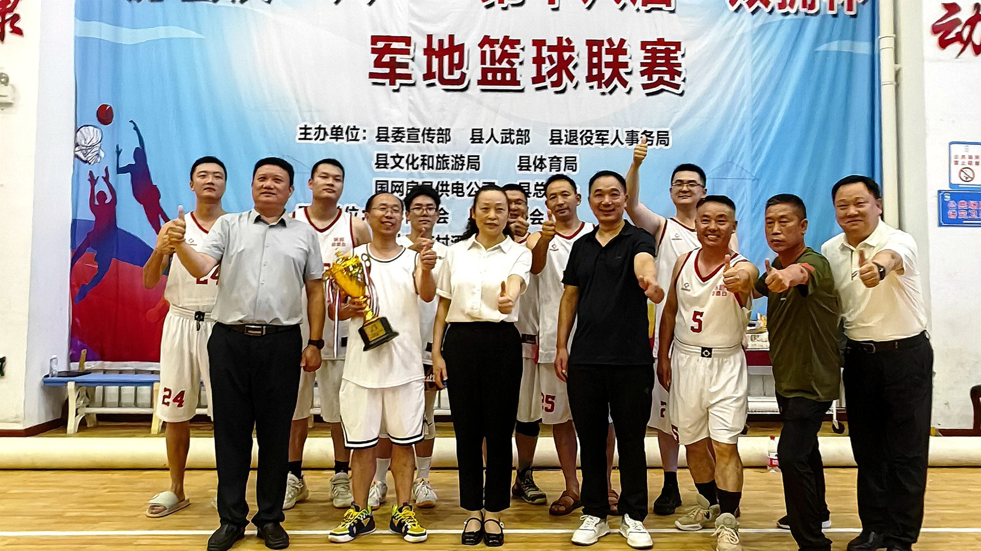 房縣新聞網(wǎng)訊 記者 秦珊珊 通訊員 吳麗麗 報(bào)道:7月30日晚,我縣慶“八一”第十八屆“雙擁”杯軍地籃球賽勝利閉幕。縣委常委、宣傳部長(zhǎng)王玲,縣人武部部長(zhǎng)劉鑫出席閉幕儀式,并為各獲獎(jiǎng)代表隊(duì)頒發(fā)獎(jiǎng)牌。
