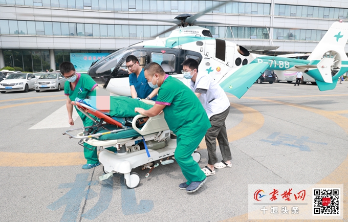 上午10時17分,直升機從健康廣場起飛;10時48分在鄖西指定地點降落,隨機醫(yī)護人員對患者進行了緊急處理,并將患者及時轉(zhuǎn)運至直升機上;10時58分再次起飛,11時29分順利返回十堰人醫(yī)。原本陸地轉(zhuǎn)運患者單趟需要2個半小時,十堰人醫(yī)直升機僅用時31分鐘,為患者贏得了寶貴的救治時間。