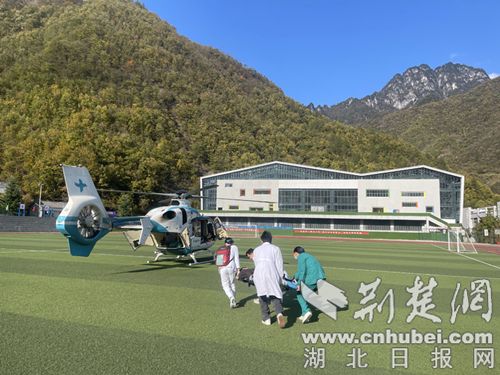 14時(shí)02分,伴隨著巨大的轟鳴聲,直升機(jī)從武當(dāng)山機(jī)場(chǎng)起飛;15時(shí)01分在指定地點(diǎn)降落,隨機(jī)醫(yī)護(hù)人員對(duì)患者進(jìn)行了緊急處理,在神農(nóng)架林區(qū)衛(wèi)健委、教育局、林區(qū)初中、林區(qū)人民醫(yī)院以及相關(guān)單位的共同協(xié)作下,將患者及時(shí)轉(zhuǎn)運(yùn)至直升機(jī)上。15時(shí)20分再次起飛,16時(shí)03分順利返回十堰人醫(yī)。原本陸地轉(zhuǎn)運(yùn)患者單趟需要近4個(gè)小時(shí),十堰人醫(yī)直升機(jī)僅用時(shí)43分鐘就將患者順利接回,為患者贏得了寶貴的救治時(shí)間。