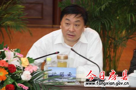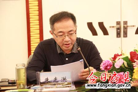 圖為縣委副書記 縣長(zhǎng)朱光洪做工作匯報(bào)