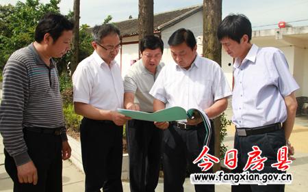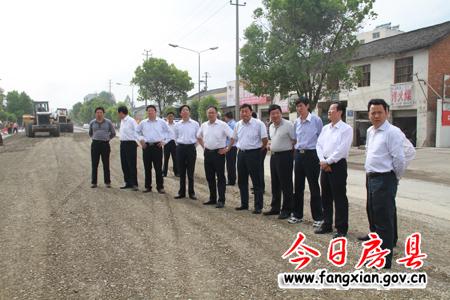圖為沈明云、朱光洪等縣領(lǐng)導(dǎo)察看房陵大道西延工程建設(shè)情況