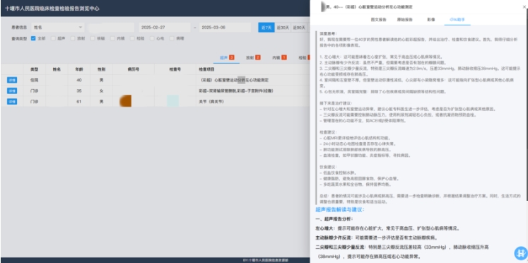 “DeepSeek系統(tǒng)不僅能解讀各項指標的異常變化,分析出可能存在的病癥,更能結(jié)合患者整體健康狀況,給出綜合性的健康改善建議和進一步檢查方向。”十堰人醫(yī)信息資源處副主任左坤介紹,這種個性化的分析建議,能夠為醫(yī)生提供了更為全面、科學(xué)的決策依據(jù)。