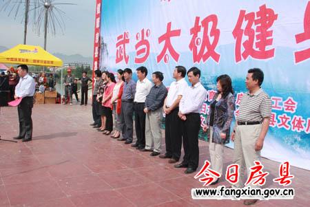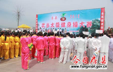 今日房縣網(wǎng)訊 記者田蘭蘭 16日,我縣武當太極健身操大賽在西河廣場舉行,來自全縣機關、社區(qū)、學校的27支隊伍參賽。縣領導丁憲章、姚峰、田松、王學能,市文體局副局長周高潮出席大賽開幕式并觀看比賽。