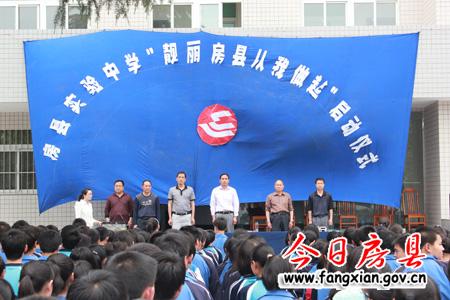圖為縣實驗中學“靚麗房縣 從我做起”啟動儀式現(xiàn)場