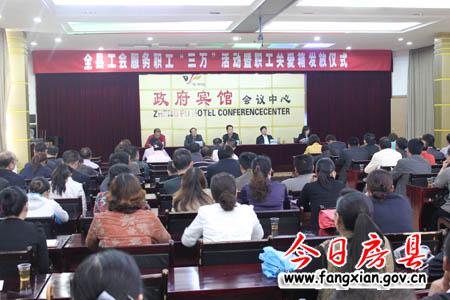儀式上,縣工會向縣恒通客運公司、電動車公司、縣武當動物藥業、昂新布業檔車班等企業、班組,發放了價值600多元裝有維權知識手冊、文體活動用品、醫療保健器材、常用藥品等的職工關愛箱。
