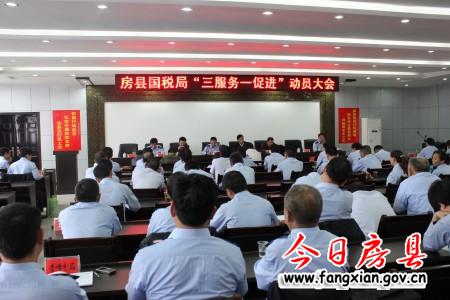 圖為縣國稅局“三服務(wù)一促進(jìn)”工作動(dòng)員會(huì)現(xiàn)場