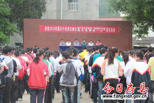 今日房縣網(wǎng)訊 記者陳銳 通訊員鄧發(fā)基 報(bào)道: 5月31日,縣衛(wèi)生局、關(guān)心下一代委員會(huì)、疾控中心在門古寺鎮(zhèn)中學(xué)舉行了第25個(gè)世界無煙日“拒吸第一支煙、做不吸煙新一代”簽名活動(dòng)。