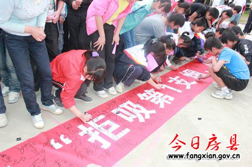 圖為學(xué)生參加“拒吸第一支煙、做不吸煙新一代”現(xiàn)場(chǎng)簽名