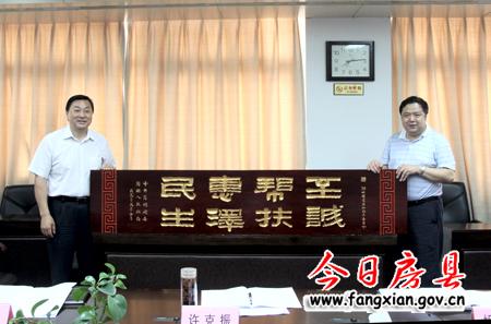 圖為縣委書記沈明云向省發改委主任許克振贈送牌匾