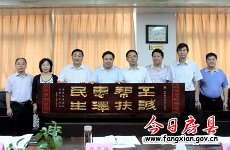 今日房縣網訊 記者 吳宏強 報道: 房縣是國家扶貧縣、國家發改委縣域經濟聯系縣,也是省發改委對口幫扶縣,自1994年以來,在省發改委歷屆領導的高度重視下,在各處室的大力支持以及駐房工作隊的傾力幫扶下,我縣經濟社會發生了翻天覆地的變化,對口幫扶工作取得了巨大成效。為感謝省發改委十八年來對我縣的傾心幫扶,7日,帶著全縣50萬人民的深情厚意,縣委書記沈明云,縣長朱光洪,縣人大主任王啟云,縣政協主席陸毅,縣委常委、常務副縣長劉慶濤一行,到省發改委拜會了省發改委主任許克振和相關處室負責人,雙方就下一步幫扶工作進行了座談。