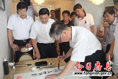 在考察中,胡啟立與縣委書記沈明云親切交談,詳細了解房縣經濟社會發展情況,尤其對房縣淵源流長的詩經文 化和獨具魅力的房陵文化表示極大的興趣,不時贊嘆房縣詩經文化內涵豐富,就進一步完善、保護、研究、打造詩經 文化作了更深的研討,并揮毫潑墨,并欣然題寫“詩祖故里,風雅房縣”。