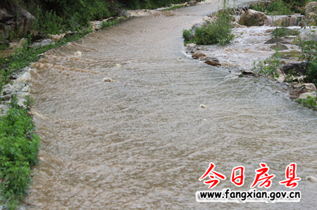 圖為萬峪河鄉(xiāng)政府門前大橋已變?yōu)楹拥?br />