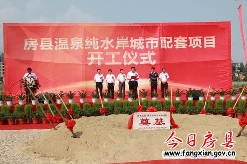 今日房縣網訊 記者陳銳 桂濤通訊員唐毅 報道: 2日,房縣溫泉·純水岸城市配套項目舉行開工儀式。副市長張歌鶯,縣長朱光洪,縣委常委、副縣長姚天國,鄂旅投資公司黨委書記、董事長馬清明、房縣溫泉旅游投資有限公司黨委書記、董事長瞿定遠等出席儀式。姚天國主持儀式,馬清明宣布開工。