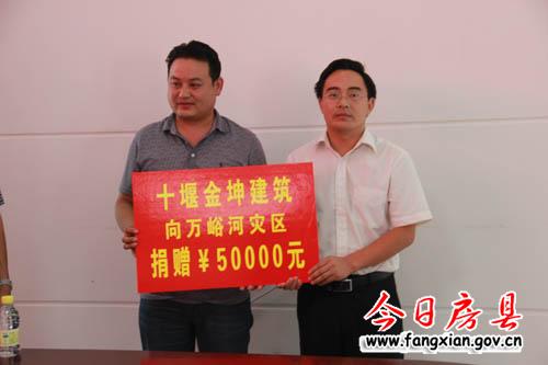 圖為縣十堰金坤建筑向萬峪河鄉捐款5萬元