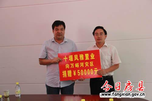 圖為十堰風雅置業向萬峪河鄉捐款5萬元