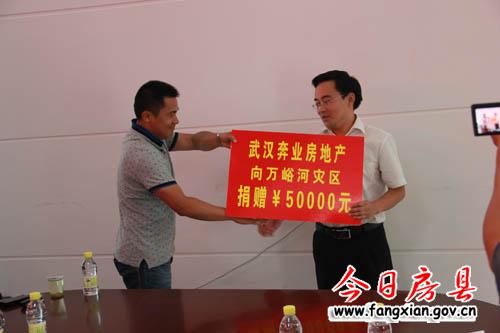 圖為武漢奔業房地產向萬峪河鄉捐款5萬元