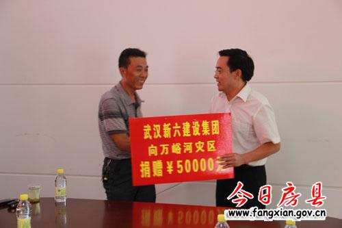 圖為武漢新六建集團向萬峪河鄉捐款5萬元