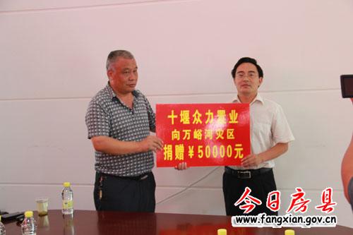 圖為十堰眾力置業向萬峪河鄉捐款5萬元