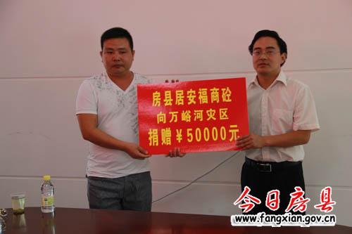 圖為房縣居安福商砼向萬峪河鄉捐款5萬元