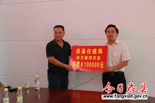 圖為縣住建局向萬峪河鄉捐款10萬元