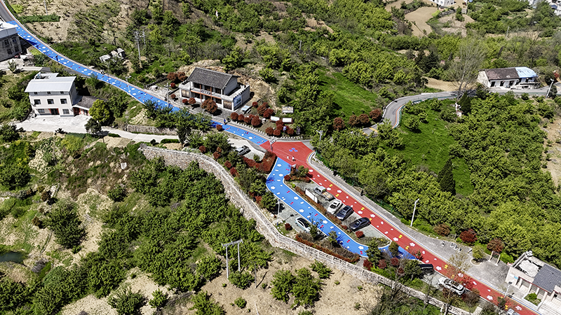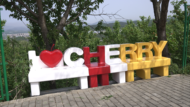 在八里村櫻桃園記者看到,修葺一新的園道路整齊的標線加上櫻桃與櫻花彩繪,讓一條普通的路也充滿童趣與生機;道路兩旁清晰醒目的指引標識隨處可見,充滿櫻桃元素的主題休息區、休息椅科學散布在園區內,為游客提供了兼具美觀與實用的歇腳之地。