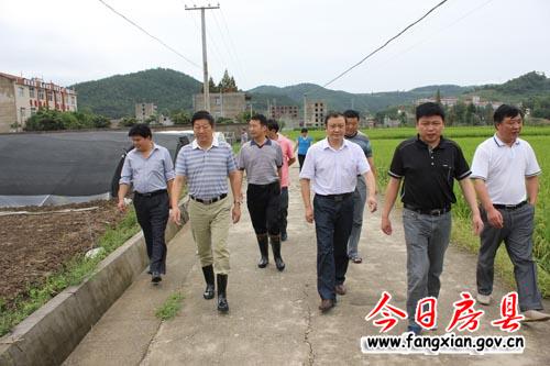 圖為王啟云一行在白鶴鎮(zhèn)長龍村察看農(nóng)作物受損情況